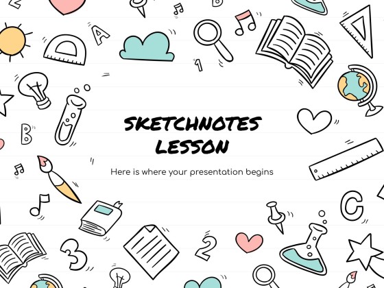 Im Bildungswesen gibt es einen zunehmenden Trend in Bezug auf visuelle Techniken, um Studenten zu helfen, Konzepte zu lernen. Es handelt sich um Sketchnotes. Diese kostenlose Präsentationsvorlage konzentriert sich auf dieses Design, so dass du eine Lektion in ein einfaches Unterrichtserlebnis verwandeln kannst.