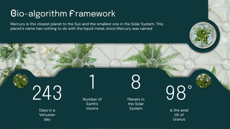 Inspiración en Slidesgo. En la plantilla «Hipernatural» los acentos en azul verdoso enmarcan diapositivas con métricas sin perder la sensación de calma.