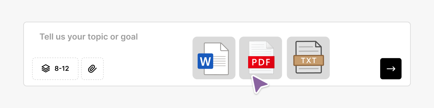 El copiar y pegar se va a acabar. En vez de eso, sube archivos directamente al creador de presentaciones. La IA detectará el contenido, extraerá los puntos clave y los convertirá en diapositivas estructuradas que reflejarán qué quieres contar y cómo lo quieres contar.