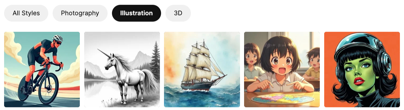 El diseño es más que decoración: es la manera en la que tu mensaje cobra vida. Ahora puedes elegir el estilo visual que se ajuste mejor a tu contenido directamente desde la caja del prompt.