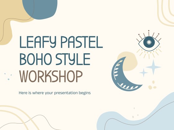 Intentemos interpretar las formas presentes en esta plantilla para talleres. ¿Nada? Entonces el estilo boho está haciendo su trabajo. Para esas ocasiones en las que necesitas una presentación que haga que todos tus alumnos se queden "pegados" a la pantalla (¡pero no literalmente!), este es el diseño que necesitas. No se centra en ningún tema en particular, así que eres libre de elegir el que prefieras y completar las diapositivas con tu propio contenido. Pero, en serio, ¿qué significan estas formas?