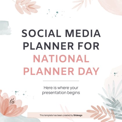 Hay personas a las que les gusta tener el control total de su tiempo. Para ellos, un planificador creativo y bien diseñado como éste es la solución perfecta para sus problemas. ¡Planifica tus mensajes, ideas y contenidos compartidos con esta bonita presentación llena de flores de acuarela y celebra el día nacional de la planificación con el mejor planificador de Slidesgo! Los diseños son, por supuesto, completamente editables para que puedas adaptarlos a tus ideas.
