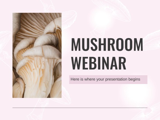 버섯 애호가 여러분, 기뻐하세요! 멋진 웨비나를 통해 여러분의 열정을 전 세계와 공유할 기회입니다. 이미 템플릿이 준비되어 있으므로 가장 쉬운 방법입니다. 과학적 세부 사항부터 맛있는 레시피까지 버섯에 대한 모든 지식을 담아 편집하기만 하면 됩니다! 이 템플릿을 사용하면 참석자 모두가 버섯에 대한 더 다양한 지식을 가지고 돌아갈 수 있습니다. 그러니 기다리지 마시고 지금 바로 버섯에 대한 꿈을 실현하세요!