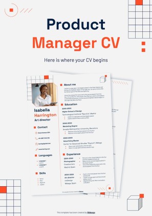 프로덕트 매니저가 갖추어야 할 자질 중 하나는 창의성입니다. 이 독특하고 우아하며 편집할 수 있는 템플릿으로 그 부분을 다룹니다. 하지만 또 어떤 자질이 있습니까? 이 CV 용 슬라이드를 사용하여 제품 관리자로서의 성과 및 경험에 관해 이야기해보세요. 이 Slidesgo 디자인을 이력서에 사용하여 자신을 밖으로 내보내고 꿈의 직업을 찾으세요!