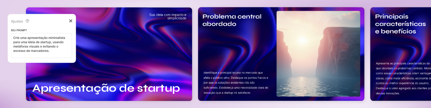 Porque um prompt claro e bem pensado leva a um conjunto personalizado de slides, em vez de apenas um texto genérico. Por exemplo:
