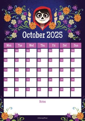 Personalize a apresentação Calendário mensal de Viva: A Vida é uma Festa em nosso editor on-line e comece a impressionar seu público graças a um excelente design acompanhado de recursos oficiais da Disney que tornarão sua apresentação única.