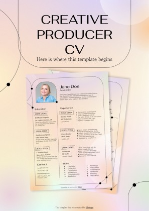 To apply for a position as a creative producer, you need to stand out from the pack. And this template can help you achieve that! Its stylish design features black text over a background of blurred gradients in shades of yellow and purple. With such an entrancing backdrop, all you need to do is add your data and accomplishments. So customize it, send it out, and get ready to break into the industry!