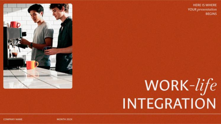 Download the Work-Life Integration presentation for PowerPoint or Google Slides. Conveying your business plan accurately and effectively is the cornerstone of any successful venture. This template allows you to pinpoint essential elements of your operation while your audience will appreciate the clear and concise presentation, eliminating any potential misunderstandings. It's not just about content, as our design also commands attention! Your business plan will definitely make a positive impression.
